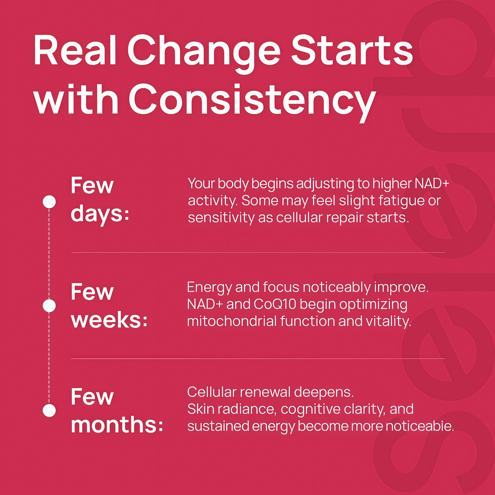 Together, NAD⁺ and CoQ10 optimize mitochondrial function, energize cells, and protect against cellular damage.